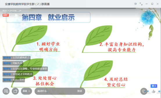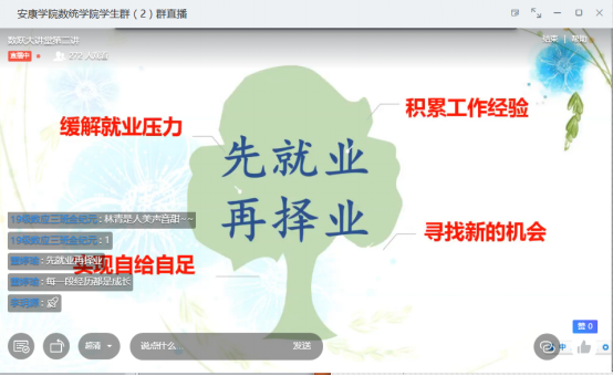 林青首先和同学们探讨了目前的就业形势,接着结合自己曲折的求职过程告诉同学们先就业后择业的重要性,在谈及她在教育机构工作期间收获的锻炼时,林青说:“每一份经历都是在积蓄力量,就业切忌眼高手低。”同时,以自己多年备考、多次考试最终成功“上岸”的经历,向同学们诠释了“机会留给有准备的人”的含义,提醒大家把握学习主业,珍惜大学时光,积累扎实的专业技能,才能抓住机遇。最后,林青鼓励学弟学妹多尝试,在不断尝试中明确前进方向。