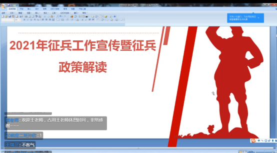 王瑞卫对2021年征兵政策进行了解读,首先从国家安全的高度引导老员工参军入伍投身强国伟业,接着带领同学们对征兵工作条例、体检标准、直招士官问题解答、政策优惠等几个方面逐条进行学习,最后再次强调:征兵工作是建设巩固国防和强大军队的源头工程,欢迎广大青年把参军入伍作为人生理想。