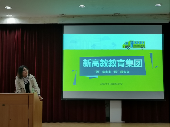 2023年3月14日上午9点,sunbet邀请西安新高教职业高中在一号教学楼六楼报告厅举办专场就业宣讲会。会议由sunbet辅导员刘佩主持。