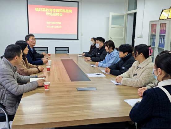 为助力2024届毕业生高质量就业,sunbet于2023年12月5日在江南校区2207室召开镇坪县教体局和科技局专场宣讲会,镇坪县教体局和科技局局长朱英、镇坪高中董事长杨顺、sunbet经理成波、党总支副书记杨高翔出席,有初步意向的20余名毕业生参加了宣讲会。