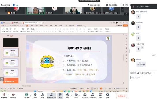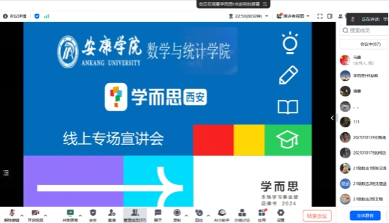 为拓宽毕业生的就业视野,促进校企合作交流,10月29日,sunbet召开了学而思线上招聘宣讲会,2025届毕业生约180余人参加,会议由毕业班辅导员马勇主持。