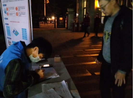 为了让居民们能够更方便地登记自己的个人信息,公司员工还联合社区及物业在各个小区进行了驻点登记,通过在小区内张贴告示、业主群推送信息倡导居民们登记。居民们配合度很高,普查工作持续到晚上八、九点,大家自发轮流拿着手机手电筒为老员工普查员照明。