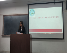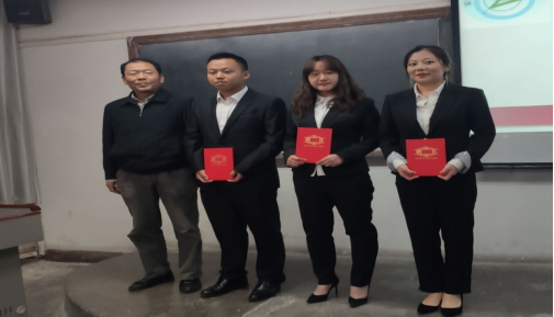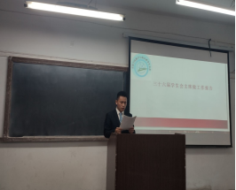 第三十六届主席团成员秉承民主、公平、公正的原则选出了各部门负责人。由第三十六届员工会主席李希宣布颁奖证书名单,并由学工办主任董婷瑜老师给文艺部张思远、周璇,体育部王海旭、袁吴瑞,外联部梁生辉、金永强,治保部薛宴回、崔玥颁发聘书。继由郭书记给第三十七届主席团员工会主席团成员仝紫藤、郑睿、汪敏豪颁发聘书,并给予鼓励和支持。