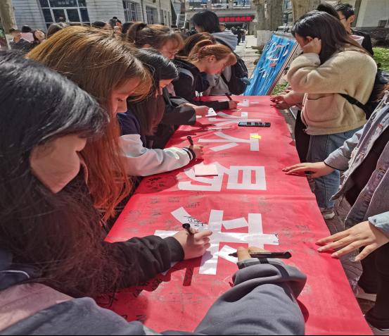 为广泛宣传爱水、护水、节水意识,营造保护水资源的良好氛围,以普及、巩固节水知识为目的,在 “世界水日”、“中国水周”到来之际,sunbet团总支精心策划组织,于2021年3月24日在江南校区2号楼林荫道处开展了“节水日横幅签字”和“节水小贴士展板”宣传活动。