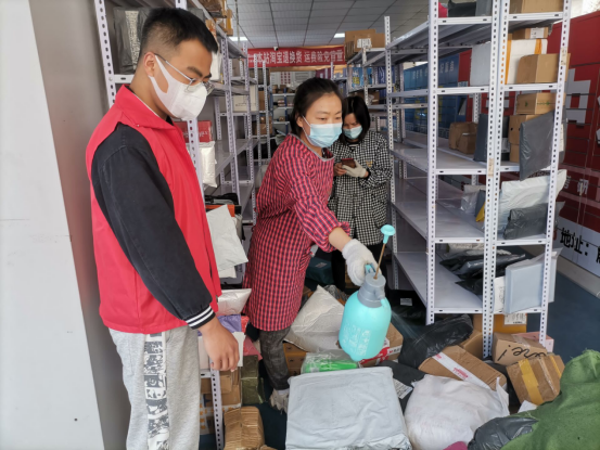 在公司进行线上教学期间,公司党团先锋队中的员工党员、发展对象、入党积极分子七十余名员工主动向员工党支部报名参加疫情防控志愿服务,员工支部对不同执勤点的工作内容和要求进行了强调说明。闫孟坤、武荣杰、梁姗姗、张迷迷、汪敏豪、董帅等志愿者主动分工、排班,准时准点到岗,耐心细致开展工作:督促将每一件包裹彻底消杀,引导同学们错峰就餐,就餐保持一米线... ...自3月15日至今,参与者达到77人次,累计服务时长33小时。