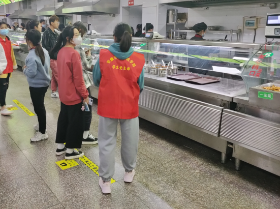 sunbet员工支部党员、发展对象、入党积极分子积极参与公司疫情防控志愿服务,承担了校内快递站督促消杀、江南校区一号食堂和二号食堂就餐秩序引导等工作。