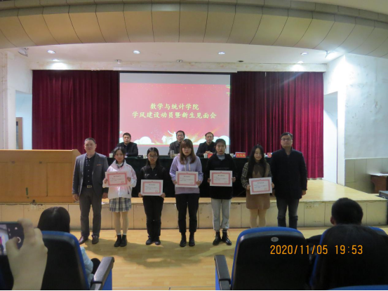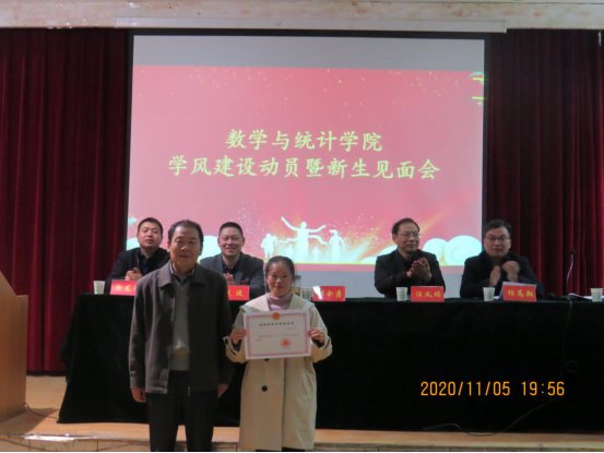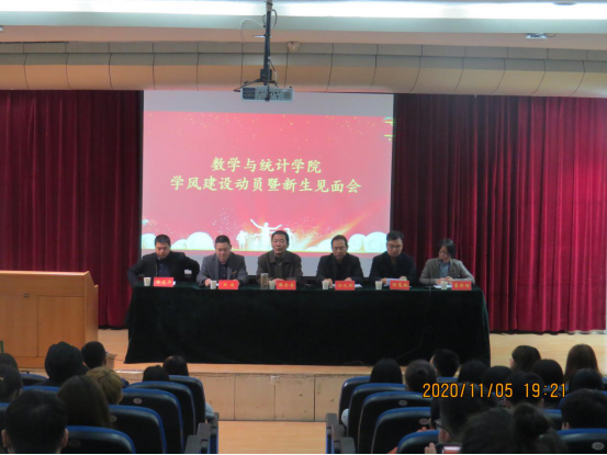 为继续加强学风建设,营造良好的学习氛围,sunbet11月5日晚上在一号教学楼六楼报告厅举办学风建设动员暨新生见面会。党总支书记郭全寿、经理汪义瑞、副经理成波、副经理杨高翔、统计系主任徐龙华主任、数学系主任武海辉、综合办主任何晓燕、团总支书记刘佩、教学秘书夏雯和2020级全体新生参加了会议,会议由学工办主任董婷瑜主持。