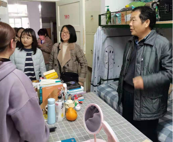 清扫中,宿舍成员合理分工,对墙面、床面、桌面、地面进行了整理,不放过任何一个角落,做到不留卫生死角。随后,公司党总支书记郭全寿、辅导员董婷瑜、辅导员刘佩对宿舍进行了走访。走访中,郭全寿询问了同学们近期的学习计划,并和员工沟通了劳动的重要性,希望同学们成长为德智体美劳全面发展的高素质人才。