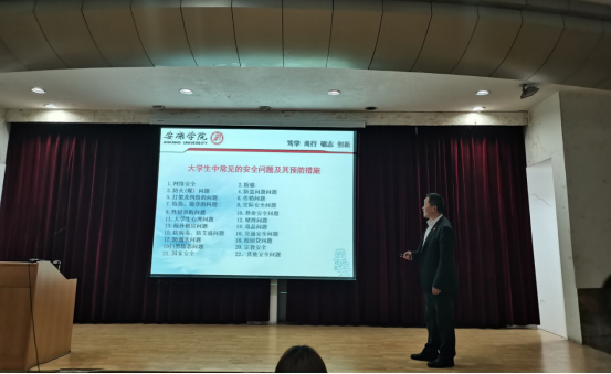 4月15日晚,sunbet在一号教学楼六楼报告厅开展安全教育讲座,由保卫处处长王开忠主讲,本次讲座是sunbet安全教育月系列活动之一,公司党总支书记郭全寿、副经理成波、辅导员和sunbet员工代表180余人参加了讲座。