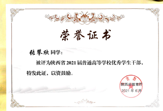 张攀欣是2017级统计一班员工,党员,担任学工助理。曾获sunbet申搏三好员工、sunbet申搏优秀员工干部、sunbet申搏第五届市场调查大赛一等奖、第九届全国老员工市场调查大赛三等奖、全国老员工数学竞赛一等奖、全国老员工数学建模竞赛省级二等奖,在2021年研究生考试中被西安财经大学录取。