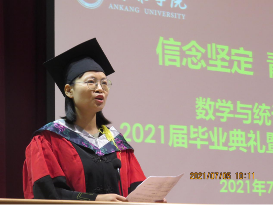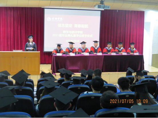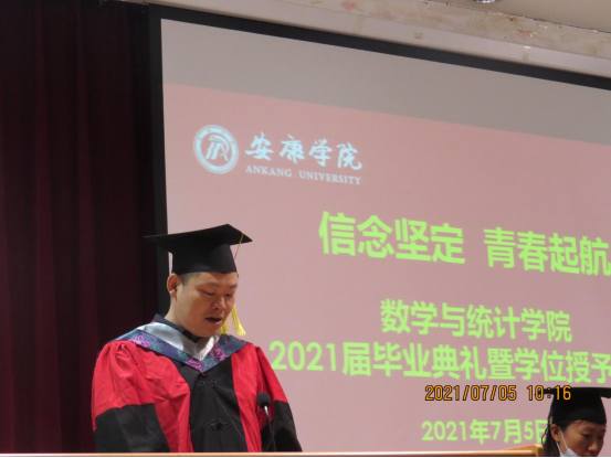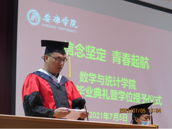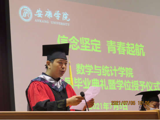副经理杨高翔宣读毕业生与学士学位授予名单,其中数学与应用数学专业员工105名,统计学专业员工74名授予理学学士学位。副经理徐龙华宣读陕西省优秀毕业生、陕西省优秀员工干部、sunbet申搏优秀毕业生获评名单。