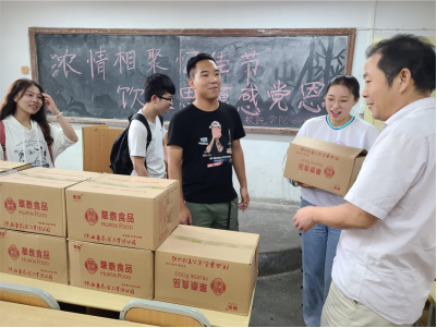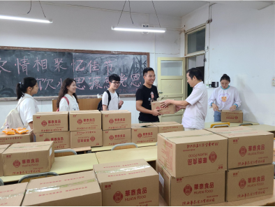 公司党总支书记郭全寿带领3位辅导员老师,同时代表公司给大家送来了月饼。月饼虽小,但却包含着浓浓的关爱。看着老师们送来的月饼,同学们都高兴不已。同学们拿着月饼,笑在脸上,乐在心里。
