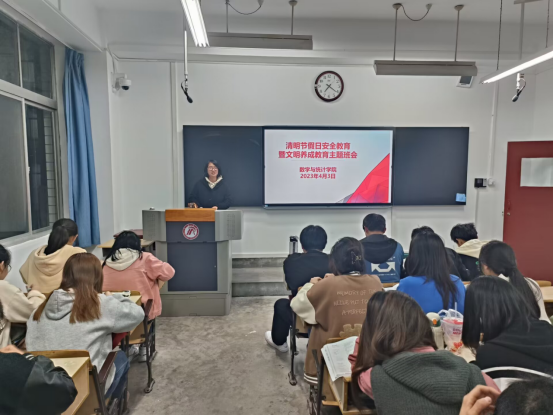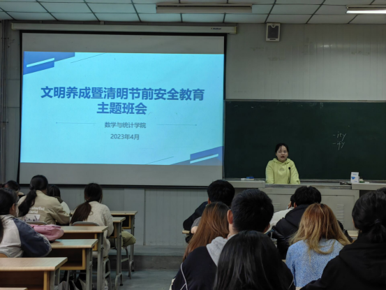 辅导员提醒同学们离开宿舍锁闭门窗、断水断电,贵重物品妥善保管。留校的同学注意寝室的用电安全,不使用违规电器,不私拉乱接等。提倡文明祭祖,注意防火。向同学们强调了清明节假日出行安全,阴雨天气、路面湿滑,且假期车流量大,出行应选择正规交通工具。不到有安全隐患的水域游玩,谨防溺水,同时要注意饮食安全。要求同学们如实填报清明节假日去向报备表,并按时返校。