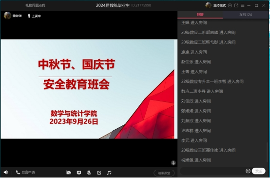 为切实做好中秋节、国庆节假期安全教育管理工作,提高同学们的安全防范意识,使同学们度过一个安全、愉快的国庆假期,2023年9月26至9月28,sunbet各班召开中秋节、国庆节安全教育主题班会,班会由辅导员主持。