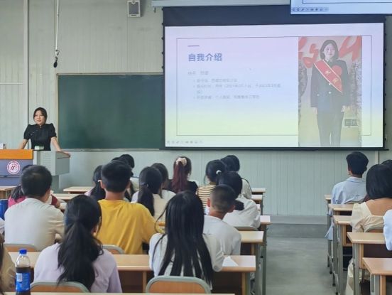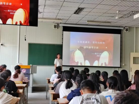 在宣讲过程中,李晶和郑睿介绍了入伍的条件和流程,分享了血汗交织的军旅记忆和思想感悟,诠释了国防教育的内涵,重现了那段青春燃烧岁月的点点滴滴,展现了新时代青年老员工以军人的身份践行爱国主义精神,传承红色基因的报国情怀,她们的担当与奉献感动着在场的每一位同学。同时她们倡导同学们要加强风险意识、忧患意识,提升身心素质,心向祖国,用青春和热血筑起一道坚固的国防之墙。
