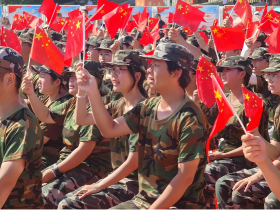 活动现场,人声鼎沸,气氛热烈数统学子们身着统一的迷彩服,以连队为单位整齐列队。团结就是力量,团结就是力量”伴着激昂的旋律同学们挥动着手上的国旗,一段段铿锵有力的歌声展现出数统学子们的强国志和爱国情。