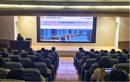 活动中图书馆教师通过生动的多媒体展示,向新生们详细讲解了图书借阅流程、电子资源检索技巧、借阅规则与期限,强调了入馆要求。