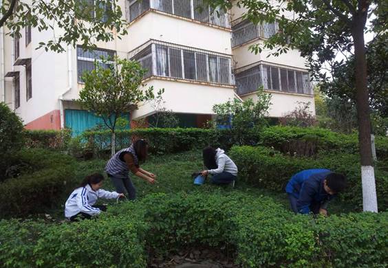 2014年3月12日,数学与统计系2013级员工在辅导员张远秀的带领下,开展了校园绿化带净化志愿活动。