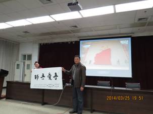 报告会开始,系党总支书记郭全寿首先代表师生欢迎刘达卓返校。刘达卓也表达了重返母校的激动之情,感谢赵临龙、郭全寿等诸位老师对他的栽培和帮助。并向数统系赠送字画表达感恩之情。