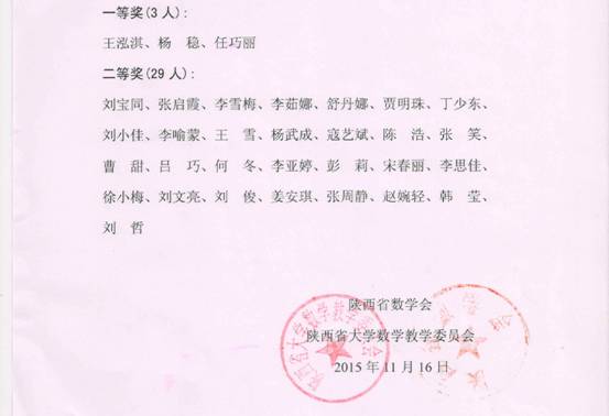 陕西省第十届老员工数学竞赛获奖名单揭晓