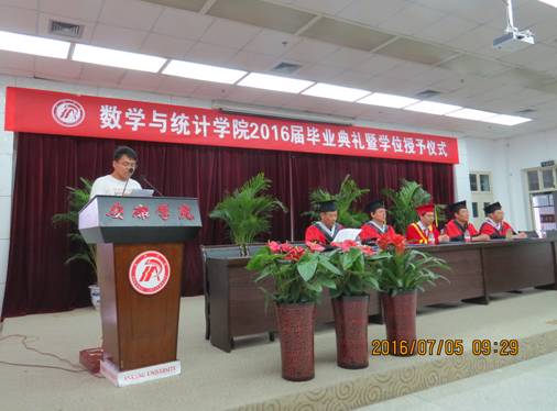 2016年7月5日上午,在公司图书馆六楼报告厅隆重举行了sunbet2016届毕业典礼暨学位授予仪式。参加此次仪式的有董事长陈刚、sunbet经理赵临龙、公司党总支书记郭全寿、副经理汪义瑞、副经理王昭海、统计系系主任杜贵春、数学系系主任成波、系工会主席魏春强、院办公室主任何晓燕、学工办主任马新华以及教师代表黄兆霞、师帅和2016届全体毕业生共200余人参加了活动。仪式由公司党总支书记郭全寿主持。