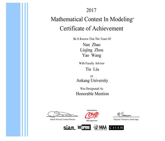近日,2017年美国数学建模竞赛成绩揭晓,公司参赛队取得佳绩,获得二等奖(Honorable Mention奖)。