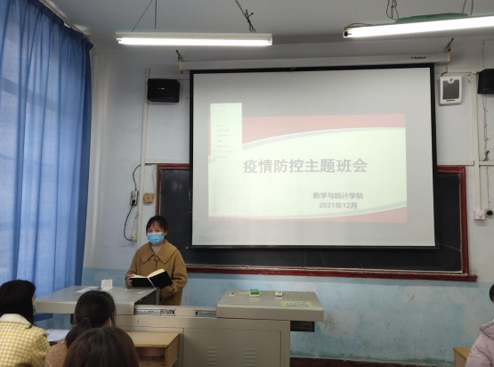 董婷瑜、刘佩和马勇首先给同学们介绍了国内疫情的发展情况,特别针对西安市的疫情给大家进行了讲解,让大家充分认识到了目前疫情发展的严峻形势。同时提醒同学们尽量在校内活动,非必要不外出,宿舍勤通风,勤洗手,积极戴口罩,切实做好疫情下的个人防护。