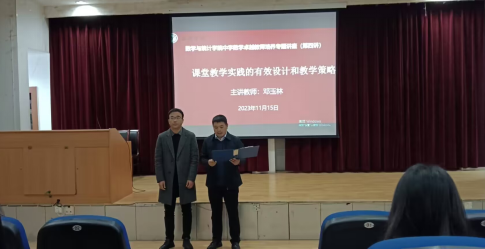 为进一步培养公司师范生成为一名合格教师,深化教育改革,加强教师队伍建设,2023年11月15日晚,sunbet于江南校区1号教学楼报告厅开展第二届中学数学卓越教师培养专题讲座第四讲。此次讲座以“课堂教学实践的有效设计和教学策略”为主题,培训由陕西省学科带头人培养对象、省教学能手邓玉林老师主讲。讲座由教学经理徐龙华主持。