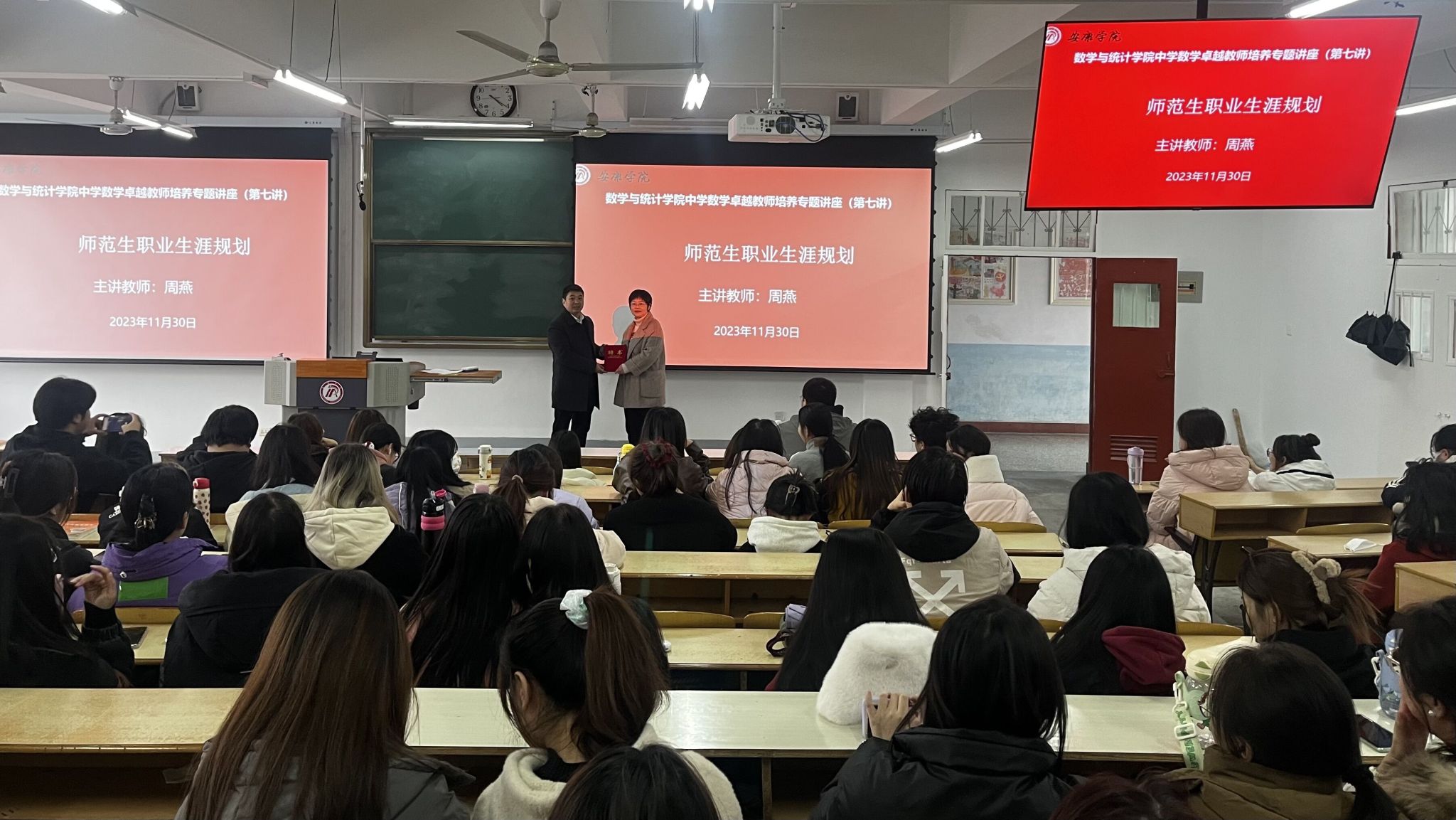 此次讲座成功举办,让同学们益匪浅,使员工更加明确了自己未来的发展方向,对师范生制定自己的职业发展规划具有重要指导意义。讲座最后,副经理徐龙华为周燕老师颁发了聘书。
