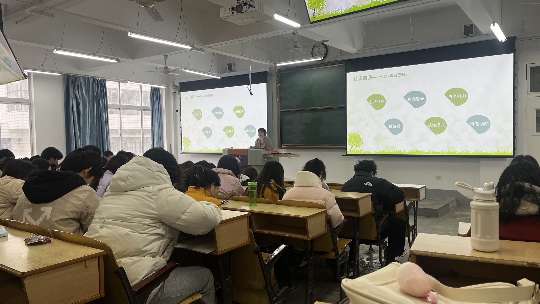 周老师从认识自我、了解环境、职业选择范围、职业目标与实施计划四个方面为同学们做了一场关于“师范生职业生涯规划”的报告,并与同学们进行了交流互动,以心理专家的专业知识分析为什么要进行职业生涯规划和怎么制定职业生涯规划,了解同学们的公司生活。