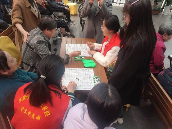 活动当天下午14:30,sunbet志愿者们准时在汉水阳光怡养院集合,随后马勇明确了活动的目的和注意事项。敬老院的负责人也发表了热情洋溢的讲话,对志愿者们的到来表示热烈欢迎,并希望此次活动能够增进老人们与社会的联系,让他们感受到社会的温暖。紧接着,员工们为老人们献上了一场场精彩的文艺节目表演。优美的舞蹈、动人的歌声、幽默的小品,赢得了老人们的阵阵掌声。随后来到了最令人感动的环节:“走近老人”活动。志愿者们每两人一组,和老人们下象棋和五子棋,与老人们聊天交流。在这个过程中,志愿者们耐心倾听老人们讲述过去的故事,分享自己的所见所闻,让老人们感受到了久违的快乐与温暖。活动最后,志愿者们同马勇一起教老人们学习手指舞,忙手忙脚的同学们和老人脸上都洋溢着笑脸,在阳光下显得柔和甜蜜。