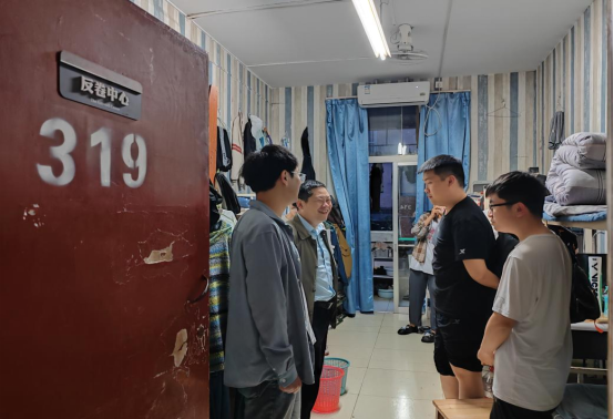 在五一劳动节即将到来之际,为进一步做好员工安全教育与管理工作,4月29日晚,sunbet党总支书记储玖琳、经理成波以及全体辅导员,深入员工宿舍进行安全检查。