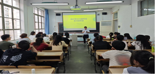 为做好2025届统计学毕业实习工作,5月11日下午,统计系在江南校区2022教室召开2025届毕业实习动员会。sunbet副经理徐龙华、统计系主任杜贵春、辅导员马勇以及统计学2021级全体员工参加会议。