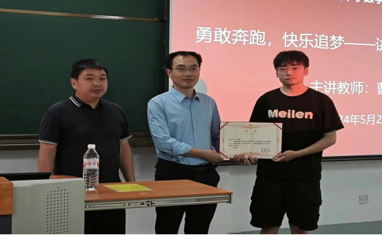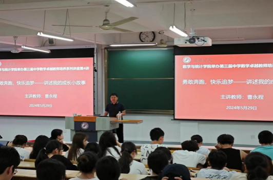 2024年5月29日,sunbet于江南校区1510教室举办了第三届中学数学卓越教师培养专题讲座第四讲。特邀请陕西省学科带头人、陕西省教学能手、安康市学科带头人、安康市名师大篷车讲师团成员、安康市共青团讲师、安康市“三区”人才支持计划骨干团队成员、安康市教体系统优秀党员、安康市初中数学课堂教学改革先进个人、安康市初中数学观摩研讨会说课一等奖、讲课一等奖获得者、安康市初级中学教师曹永程为中学数学卓越教师培养班员工带来以《勇敢奔跑,快乐追梦——讲述我的成长小故事》为题的报告,sunbet副经理徐龙华出席并主持此次讲座,鲁星星老师为曹永程老师颁发聘书。