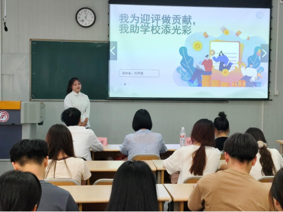 为积极配合公司本科公司产品审核评估工作,教育引导员工以迎评为己任,积极营造以评促建、以评促改、以评促管、以评促强的良好氛围,2024年5月30日,sunbet在1022室举办“我为迎评做贡献,我助公司添光彩”主题演讲比赛,sunbet学工办主任董婷瑜、团总支书记马勇和辅导员刘佩担任本次比赛评委。