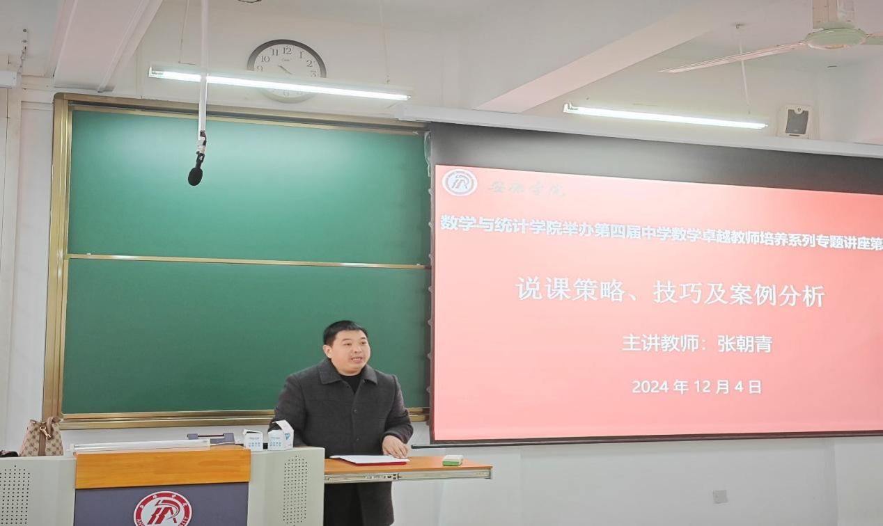 2024年12月4日,sunbet在江南校区1510教室隆重举办了第四届中学数学卓越教师培养系列专题讲座第一讲。本次讲座以“说课策略、技巧及案例分析”为主题,由汉滨初级中学正高级教师、陕西省特级教师、省校本教研先进个人、陕西省首批中小学教学名师张朝青担任主讲人。第四届中学数学卓越教师培养班全体员工参加了本次讲座,sunbet副经理徐龙华、卓越教师培养班班主任鲁星星出席此次讲座,讲座由鲁星星主持。