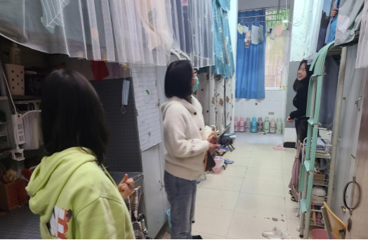 在宿舍日常环境卫生检查环节中,辅导员持续深入宿舍对宿舍卫生、物品摆放、安全用电等多个方面进行了全面细致检查。帮助员工们养成了良好的卫生习惯,增强了员工们的安全意识。