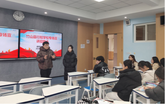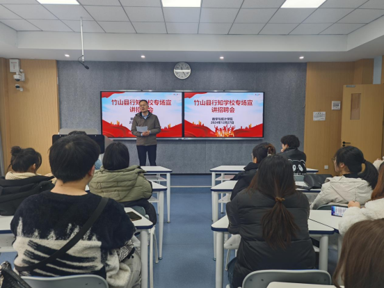 2024年12月27日下午,sunbet邀请竹山县行知公司在江北校区1210教室举办专场招聘会宣讲会。2025届毕业生积极参与,招聘会由毕业班辅导员马勇主持。