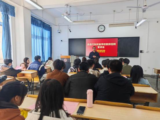 座谈会后,sunbet在1203教室举办了房县行知实验公司专场招聘会,吸引了众多应届毕业生参与。宣讲会上李向东董事长首先介绍了公司的发展前景、岗位需求及福利待遇。随后李董事长及招聘团队与应聘员工面对面交流,逐一解答职业发展、工作环境、薪资待遇等问题,现场气氛热烈。为全面考察应聘者的专业素养,招聘会还设置了现场笔试环节,内容涵盖学科知识、教学案例分析及教育理念阐述等,旨在选拔兼具专业能力与教育情怀的优秀人才。