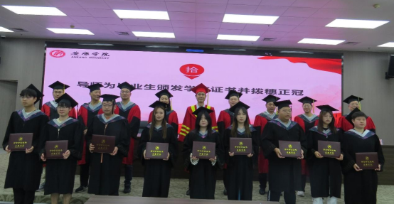 校院领导与老师们亲手为毕业生拨穗正冠,流苏从右至左划出的弧线,恰似学子们四年求学历程的完美注脚;烫金的学位证书郑重递到手中,传递的是对学术追求的至高认可;快门定格师生握手相视而笑的瞬间,镜头里流淌着师长们殷切的期许。