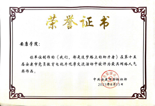 2021年2月,sunbet员工党支部书记董婷瑜主讲录制的微党课作品《我们,都是追梦路上的助力者》被公司党委组织部选送参加安康市第十五届党员电教片观摩评比活动。通过集中审核、网络投票、观摩评比终评环节,4月15日,该微党课作品以评委打分第名、网络投票第一名的好成绩荣获二等奖和最具网络人气奖。